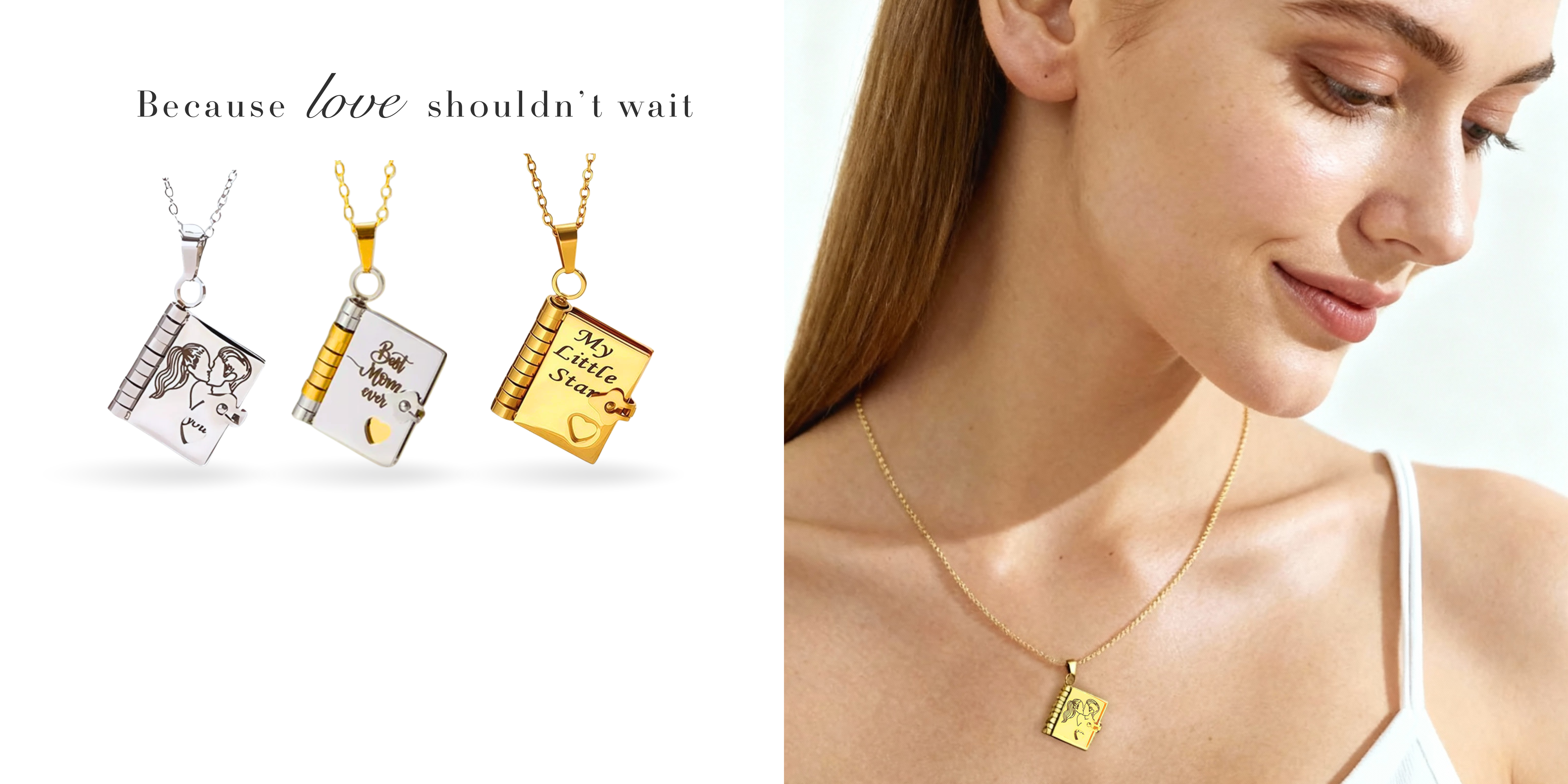 Tiny books, heartfelt stories. Each necklace holds a secret message of love, crafted to be worn close to the heart. A timeless keepsake for your most cherished connections.