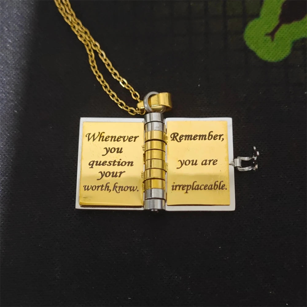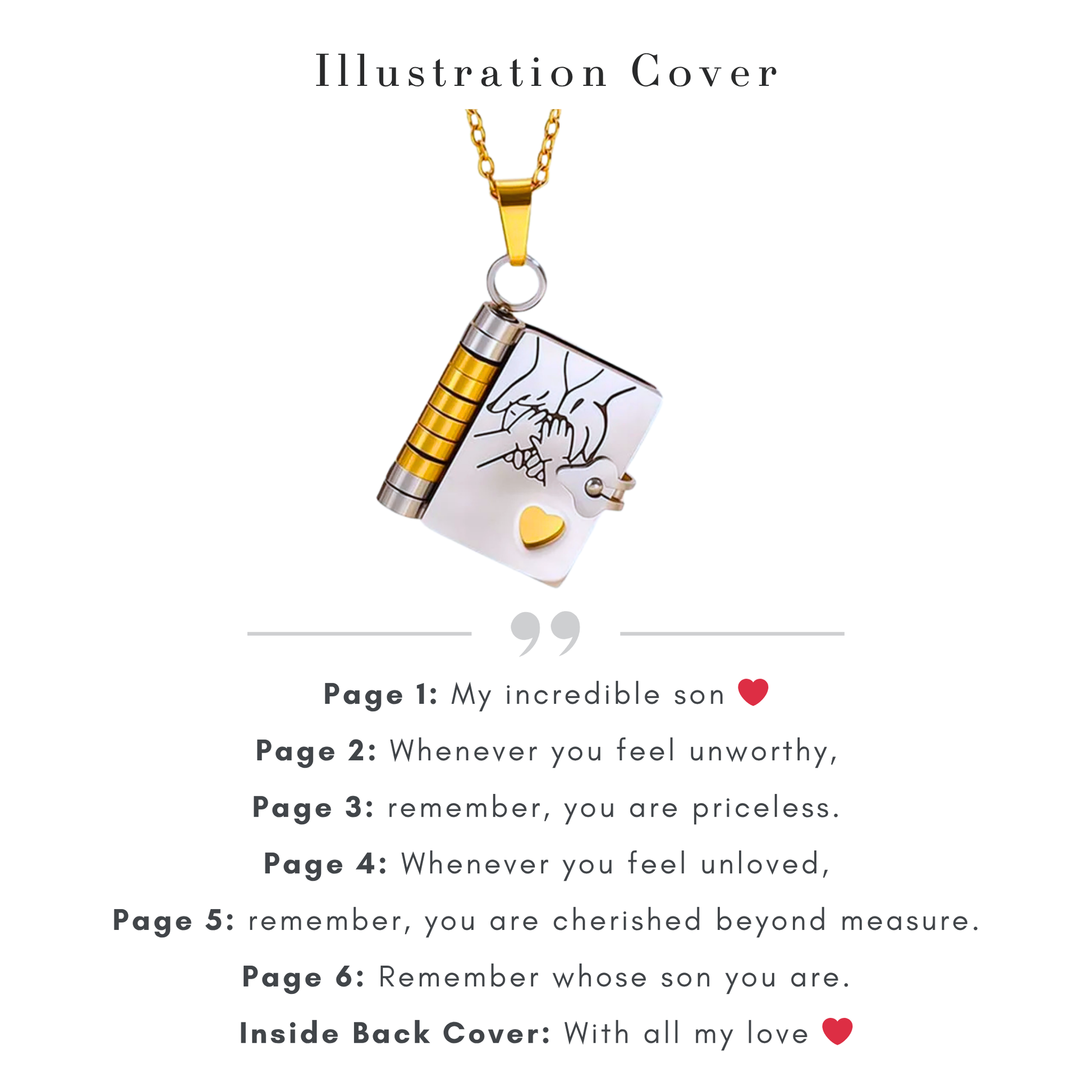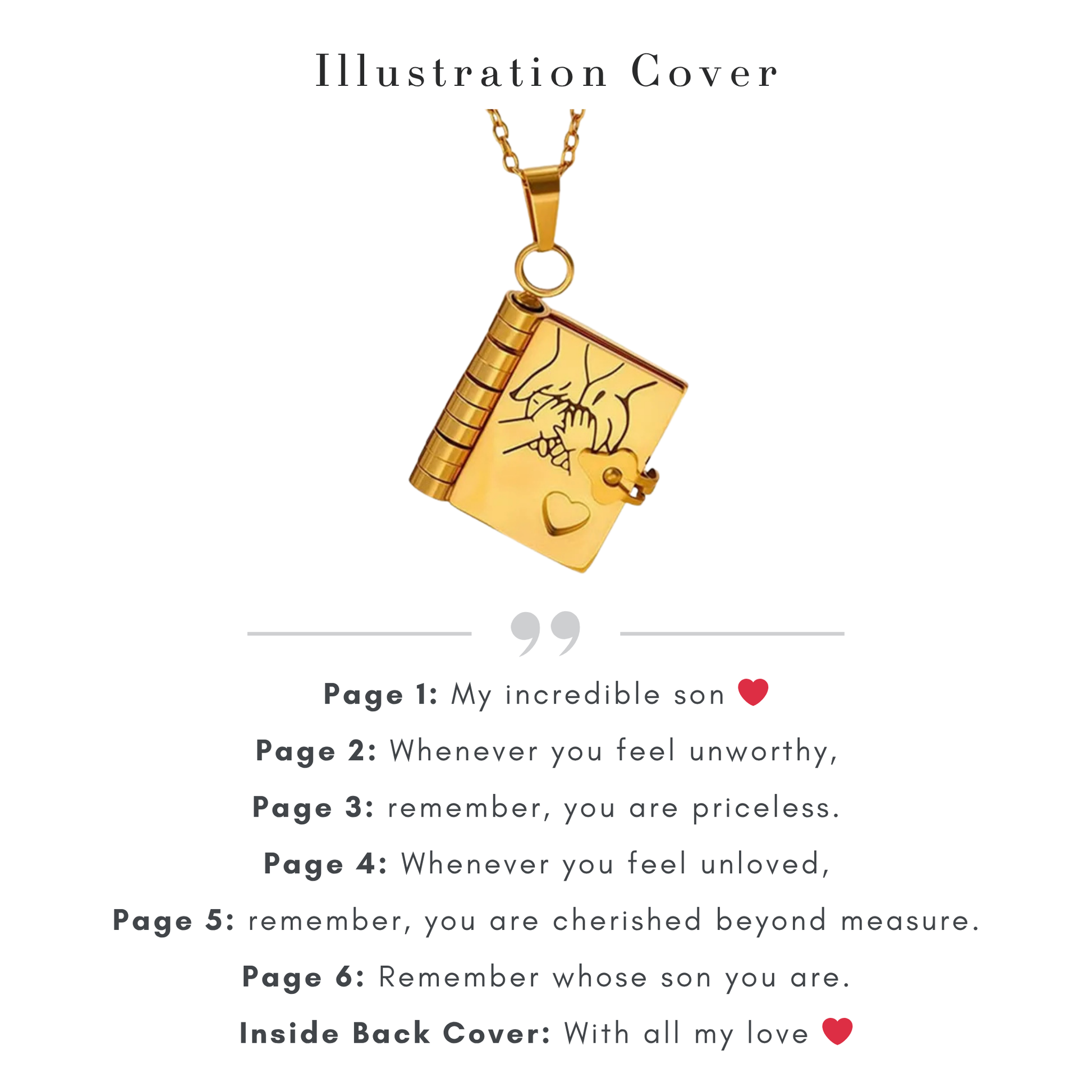 Some words are too important to be said just once. This beautiful book locket holds a constant reminder of your special bond that they can carry with them, always.